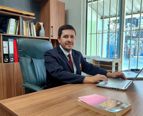 En la oficina de dirección del Colegio Campoalto, el director,…
